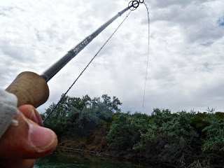 Chris pitched his fish back in the water, and this time I got my line out before he did. My fly hit a nice pocket of water, and when I retrieve it, I felt some pressure and set the hook.
